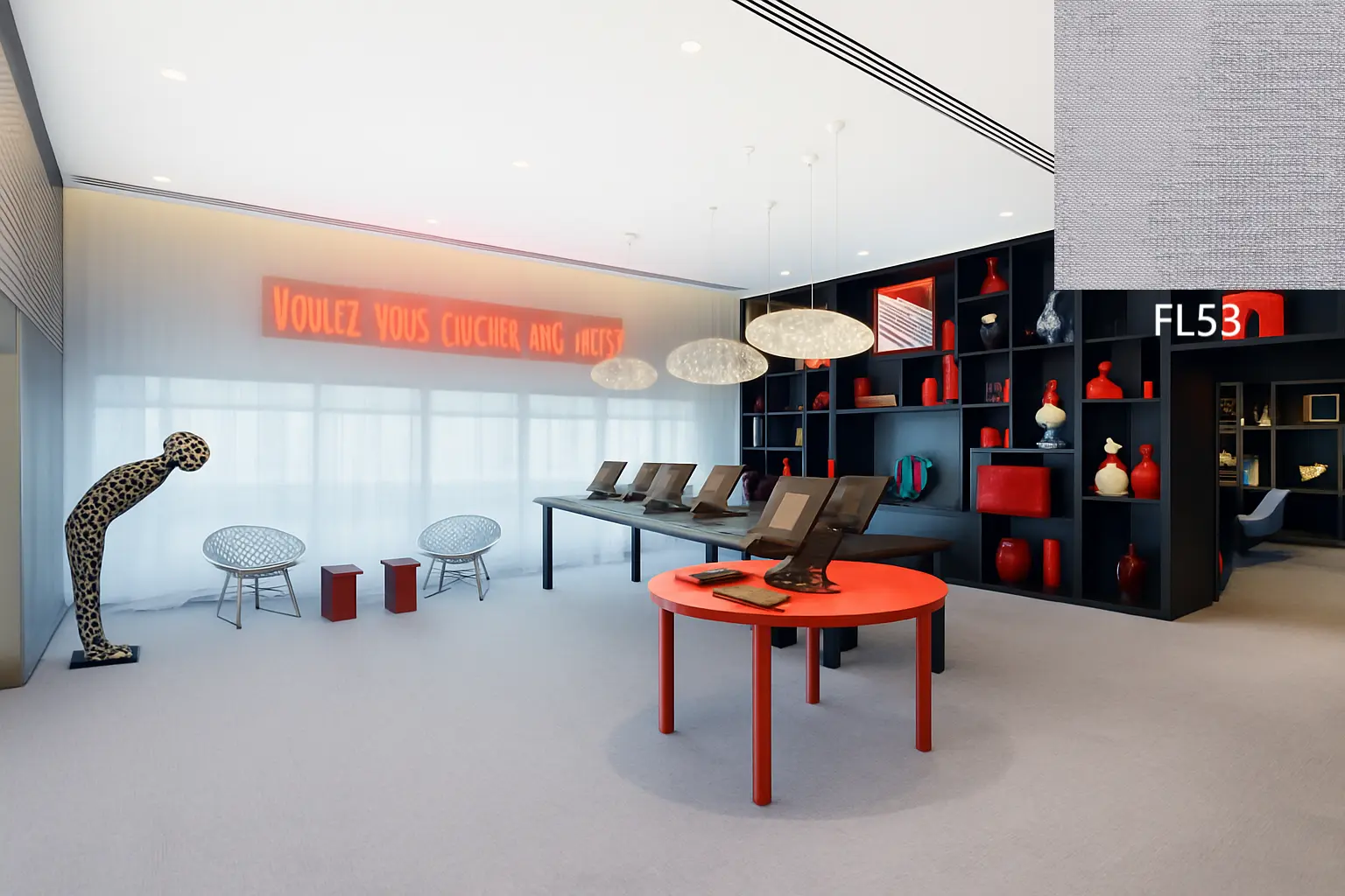 La série Garden présente une structure jacquard tricolore délavée à l'encre, mettant en valeur une palette vibrante. Il comprend un rouge passionné, un vert clair serein et un ton sombre mystérieux. Le dégradé de couleurs passe du clair au foncé et du clair au profond, permettant aux clients de créer leur style artistique unique.