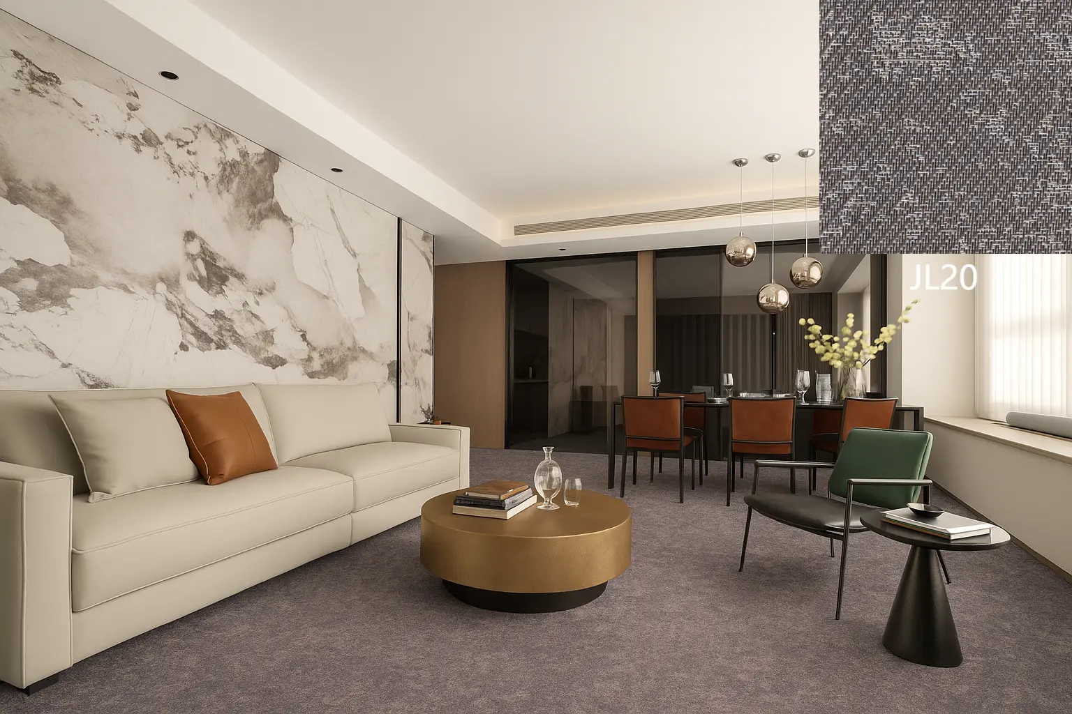 Le tissu de la série Imagine présente une structure sergée jacquard bicolore qui transmet stabilité et résistance. Sa texture bicolore distinctive crée un motif simple mais attrayant. Alliant chaleur et subtilité, il inspire une créativité sans fin pour exprimer un charme introverti.