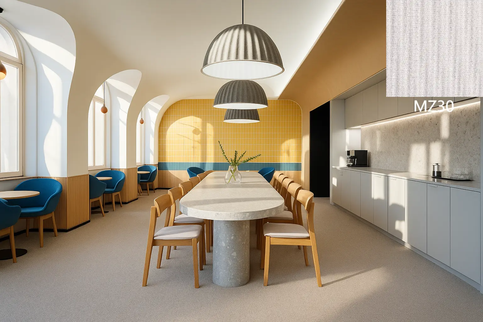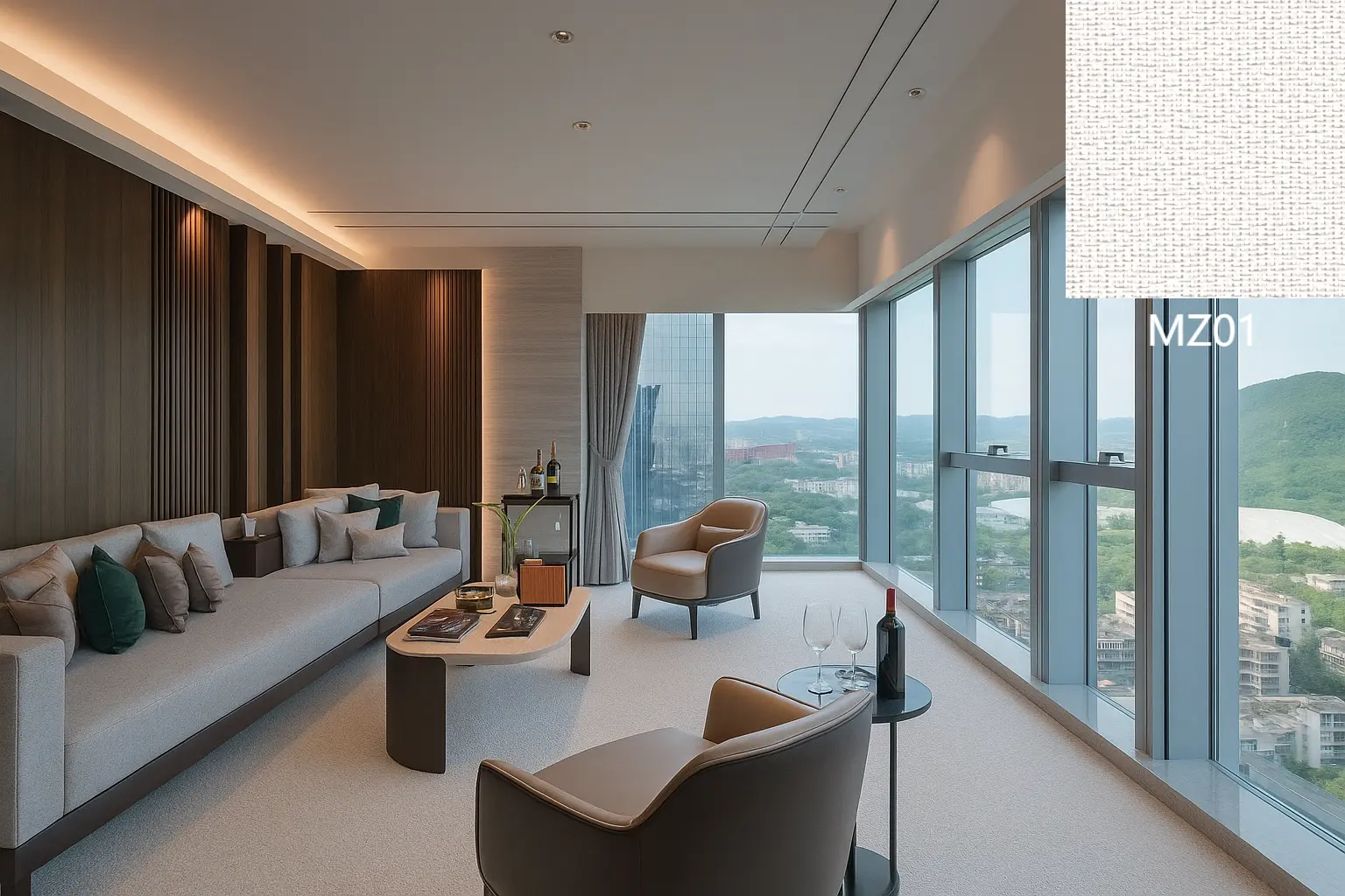 La série Nature présente un design à tissage uni bicolore. Il est doux, élégant, chaleureux et met en valeur les couleurs naturelles. Lorsqu’il est utilisé à l’intérieur, le tissu crée une atmosphère lumineuse, fraîche et calme, rehaussant l’espace avec un style artistique unique qui embrasse et se connecte à la nature.